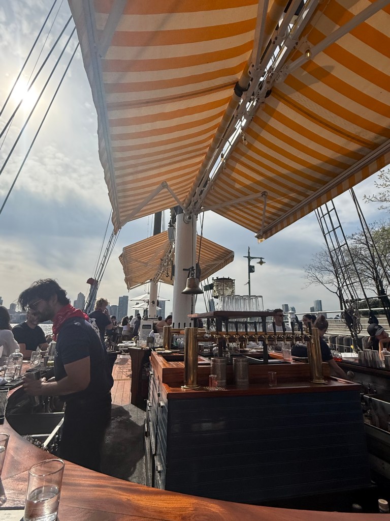 The next day was another sun filled one and to make things better I had no work. Now, if you ever don’t know what to do in New York on one of the sunniest days of the year, make your way down to Grand Banks. This gorgeous sailboat located on Pier 26 is perfect for sunny summer days in New York. It serves absolutely delicious cocktails right on the water, overlooking the Statue of Liberty and the World Trade Center. It really is cocktails with a view, and what a more perfect view could we have?