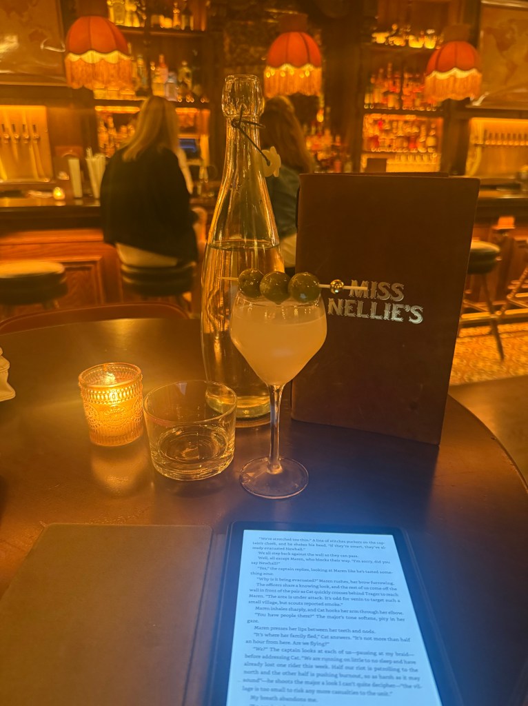 By the time it got to Saturday I figured I deserved break from all this intense studying. So, for the last time this semester, I took the subway downtown and took myself on a solo date. This time, I thought I would try something truly sentimental to me. I picked out a perfect little restaurant called Miss Nellies, located in the heart of Midtown. Miss Nellie’s is named after Nellie Bly, one of the first female investigative journalists who moved to New York to work for the New York Newspaper. Something I can only aspire to do someday. Once there, I had a perfect dirty martini, filled to the brim with blue cheese olives and enough vodka to take the edge off and I sat reading my book in a perfect midtown relaxation. What a fabulous way to end my downtown adventures until after the summer.